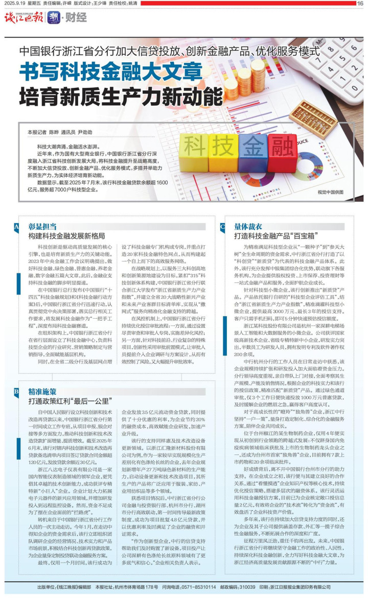 近年来,作为国有大型商业银行,中国银行浙江省分行深度融入浙江省科技创新发展大局,将科技金融提升至战略高度,不断加大信贷投放、创新金融产品、优化服务模式,多措并举助力新质生产力,为实体经济培育新动能。